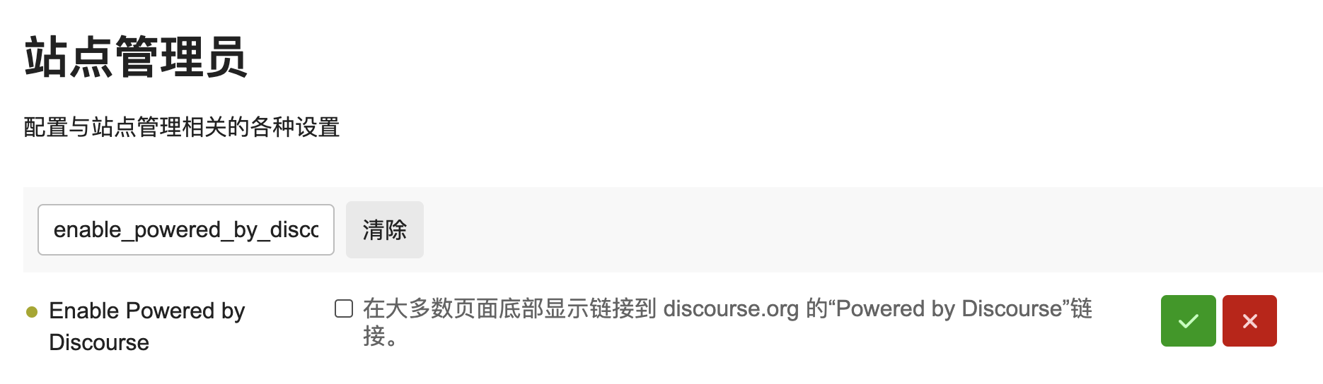 后台设置入口:/admin/config/site-admin?filter=enable_powered_by_discourse