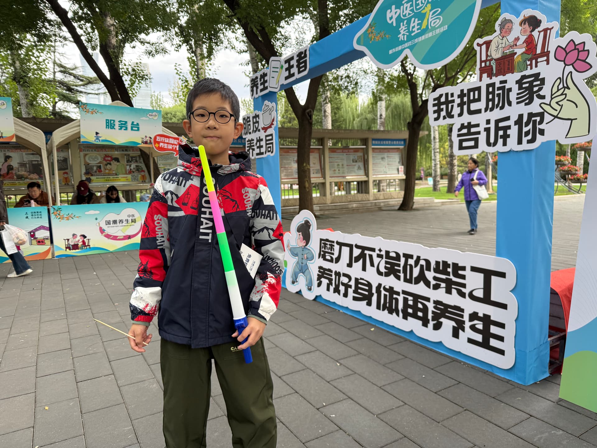 带孩子检查完视力 来日坛公园瞎逛