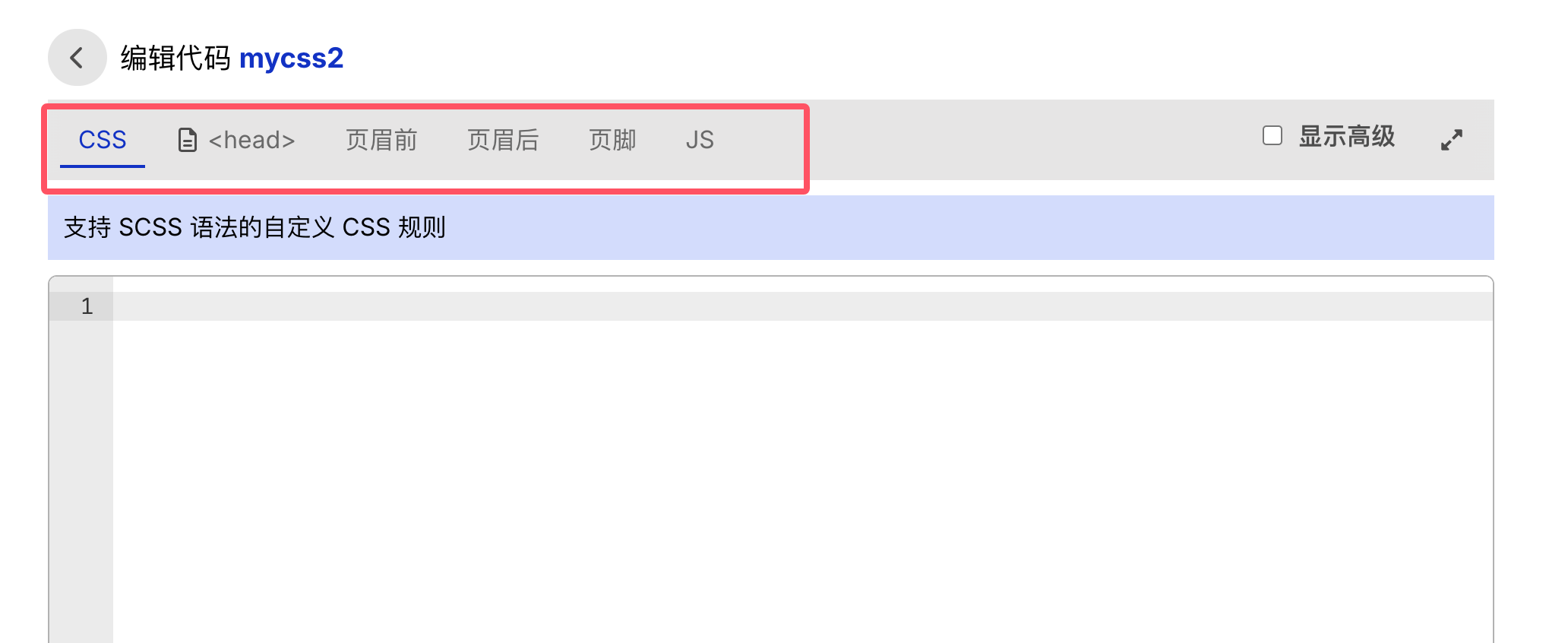 这里就可以添加自定义css代码了!也可以在头尾部添加自定义代码,比如统计代码这些。