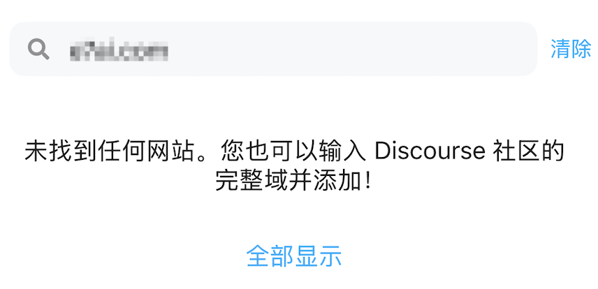 当我高高兴兴去下载APP,添加站点的时候,却发现怎么都添加不上。提示“未找到任何网站。您也可以输入Discourse 社区的完整域并添加!”。输入完整的域名discourse.org.cn和地址https://discourse.org.cn/ 都不行。