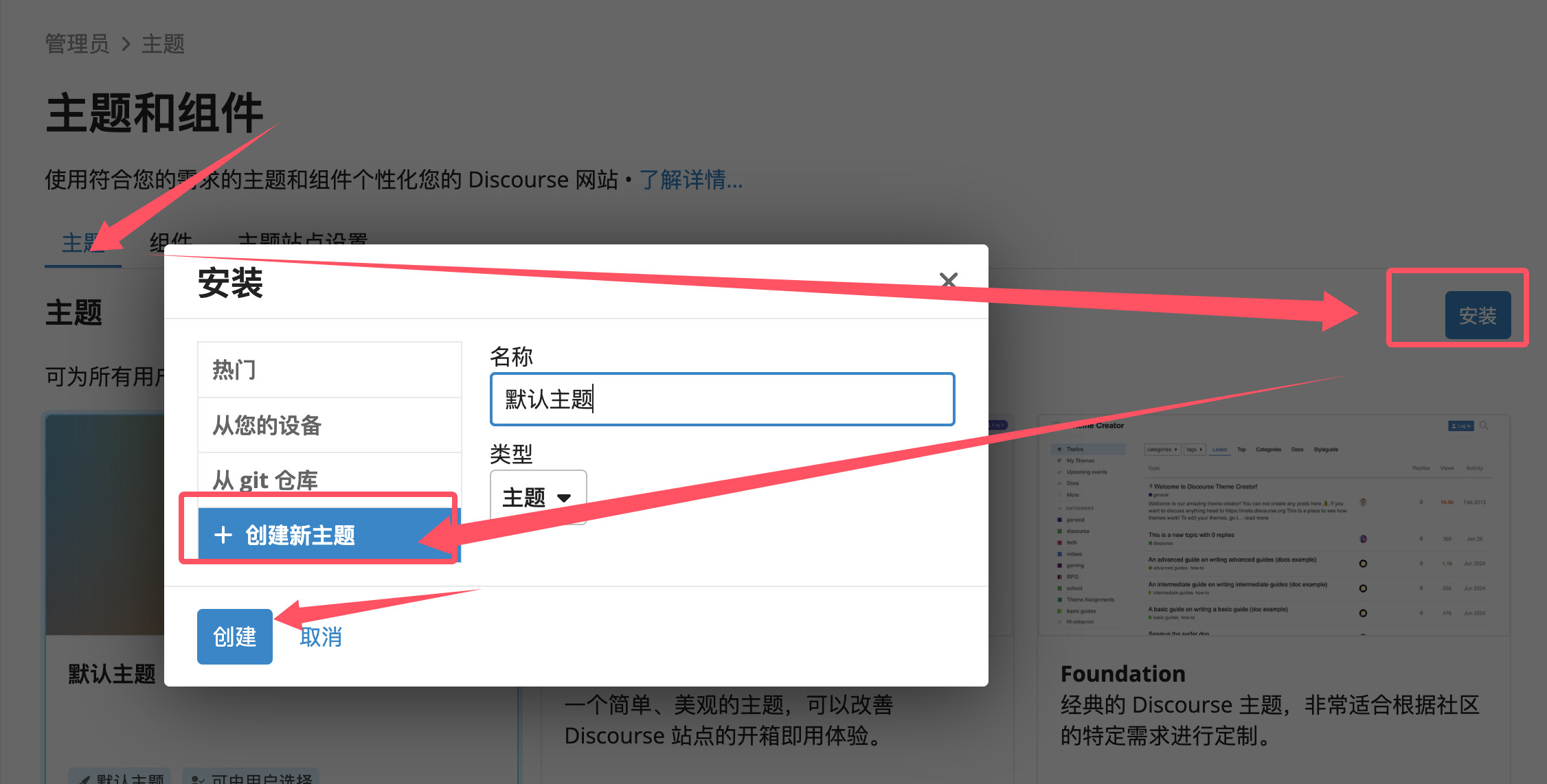在配置页面,用户可以选择主题必须选中,不然不会出现在列表中。深色调色板一定要选择,不然不会出现深浅选择图标。包含组件选择上面安装的这几个,除了Full width。