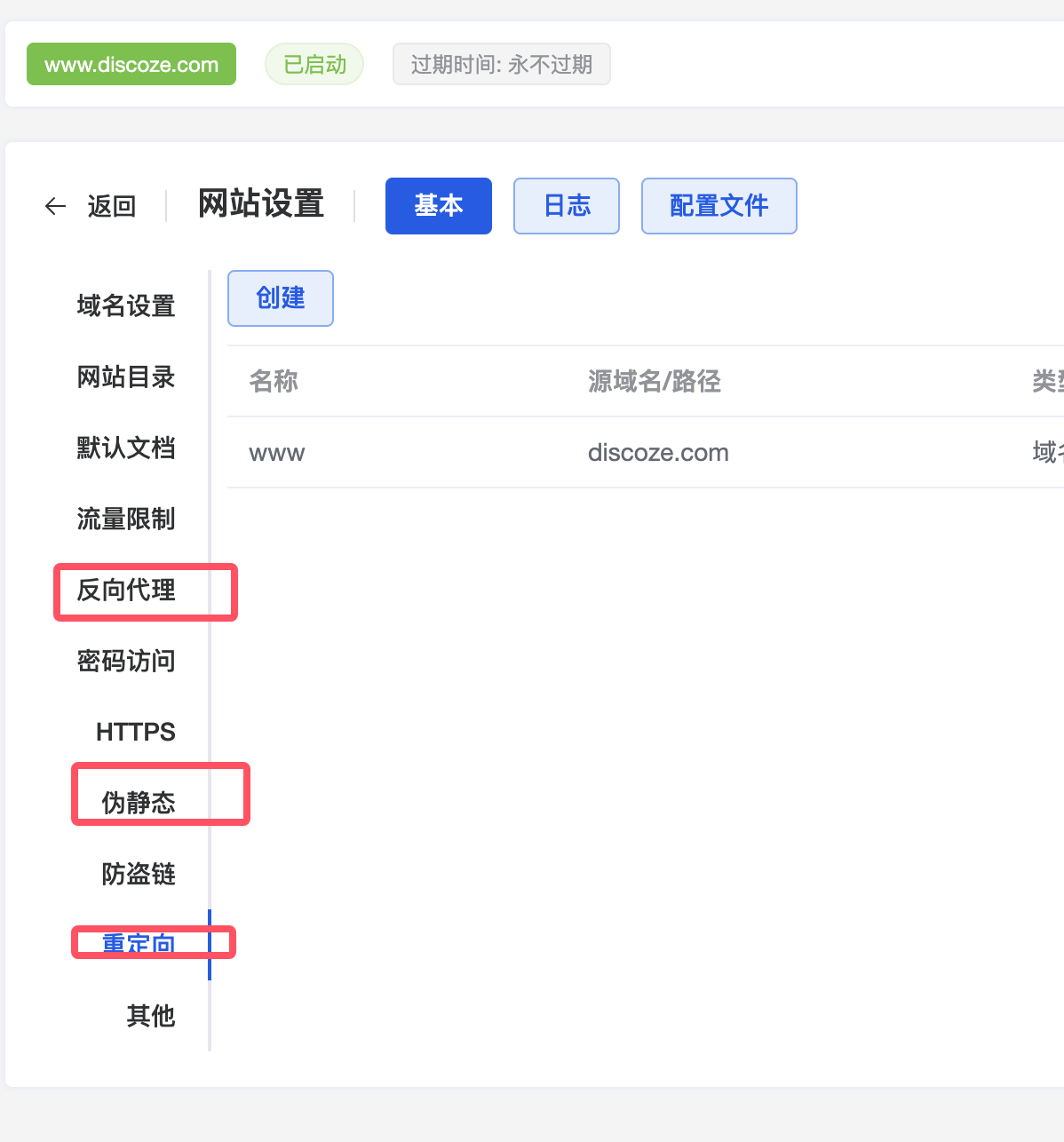 配置网站和反向代理