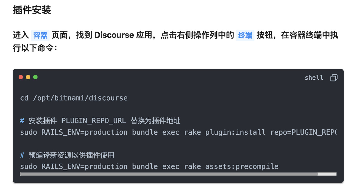有两个注意点,一个是结尾别忘了加.git,另一个是,如果你原本的那条里没有- sudo -E -u discourse这个前缀,那么你新增的插件行业不要有。