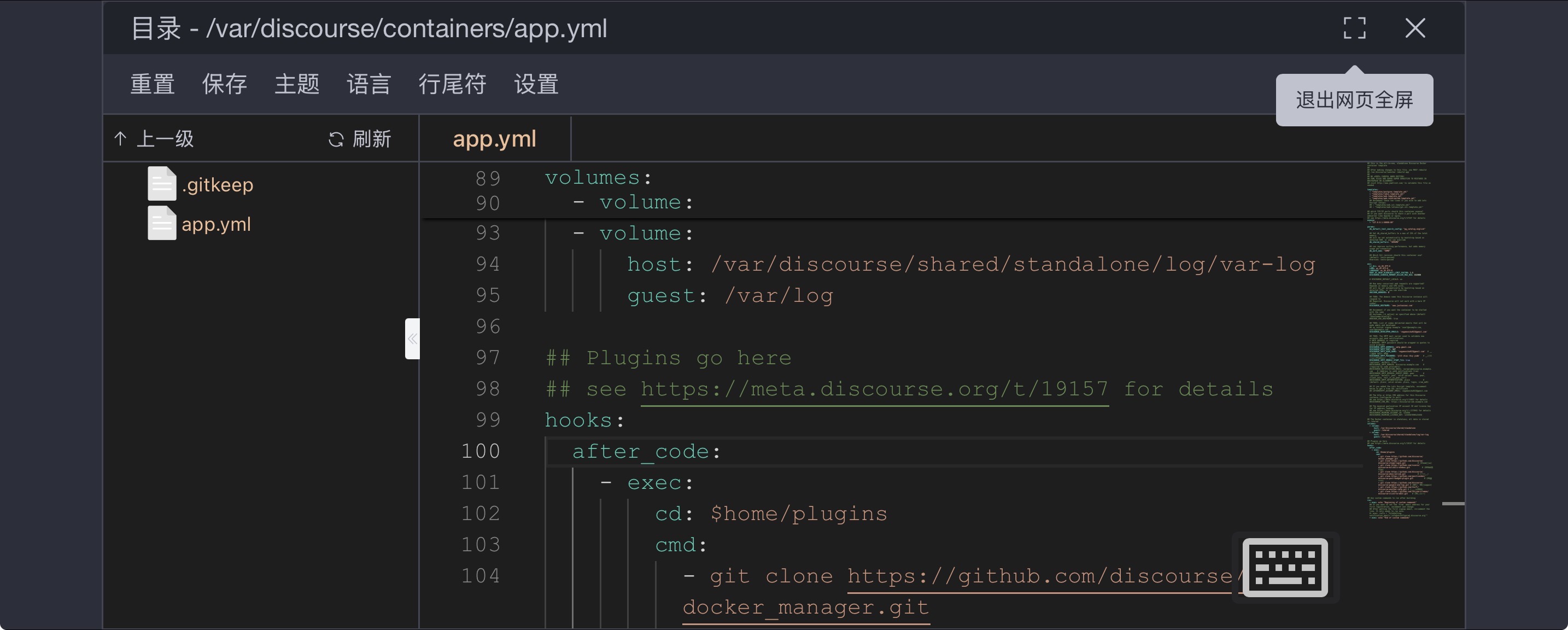 编辑 Discourse 配置